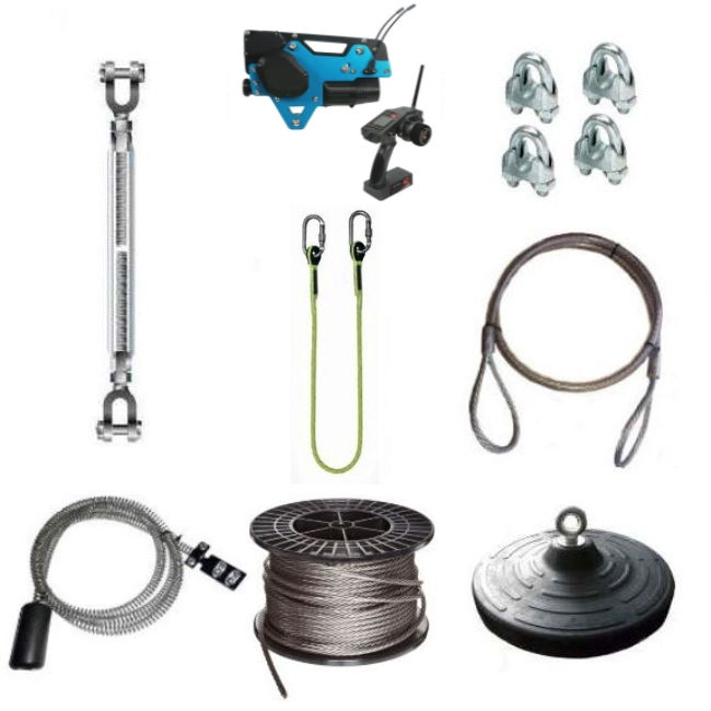 If you are thinking of intstalling your new zip wire kit yourself, then one thing that you will need to consider is that doesn't how long the run, you will need to put tension into the (wire) run. Now normally we would be more than happy to offer you our complete installation kit, but unfortunately due to having a run on them in the last few months, we have completley sold out. Although we do have some more on order from our manufacturers, they are unlikely to be here until at least January 2025.