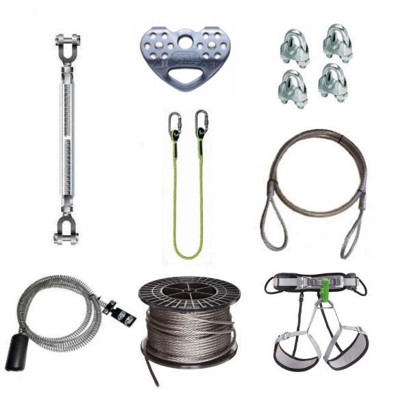 Please find below a list of items that you will find in the box. It's worth noting that you will receive two deliveries for your zip wire kit. 1x will be the wire and strop which is made and cut to order from our wire manufacturer in the West Midlands and 1x will be all the hardware for the kit which comes directly from The Zip Wire Company.