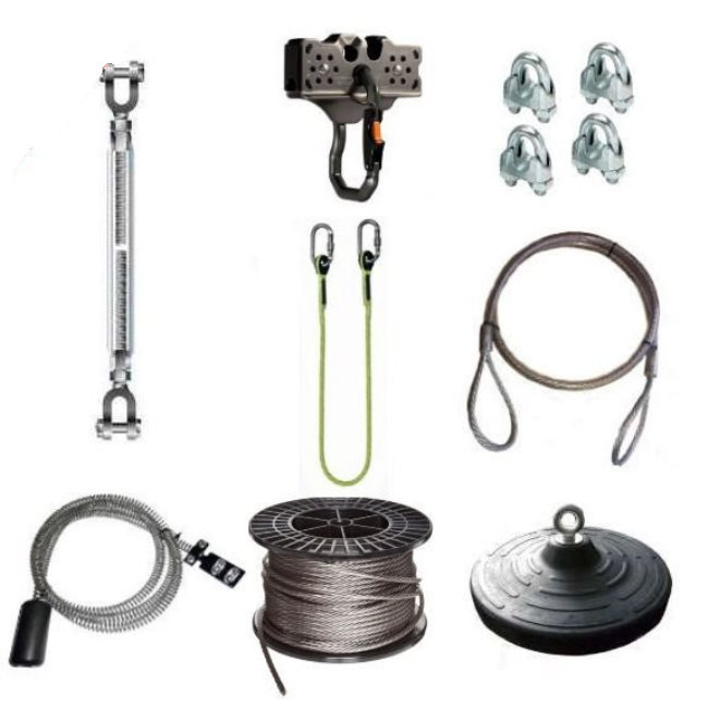 Please find below a list of items that you will find in the box. It's worth noting that you will receive two deliveries for your zip wire kit. 1x will be the wire and strop which is made and cut to order from our wire manufacturer in the West Midlands and 1x will be all the hardware for the kit which comes directly from The Zip Wire Company.
