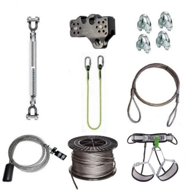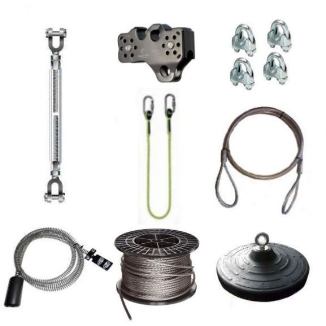 Please find below a list of items that you will find in the box. It's worth noting that you will receive two deliveries for your zip wire kit. 1x will be the wire and strop which is made and cut to order from our wire manufacturer in the West Midlands and 1x will be all the hardware for the kit which comes directly from The Zip Wire Company.