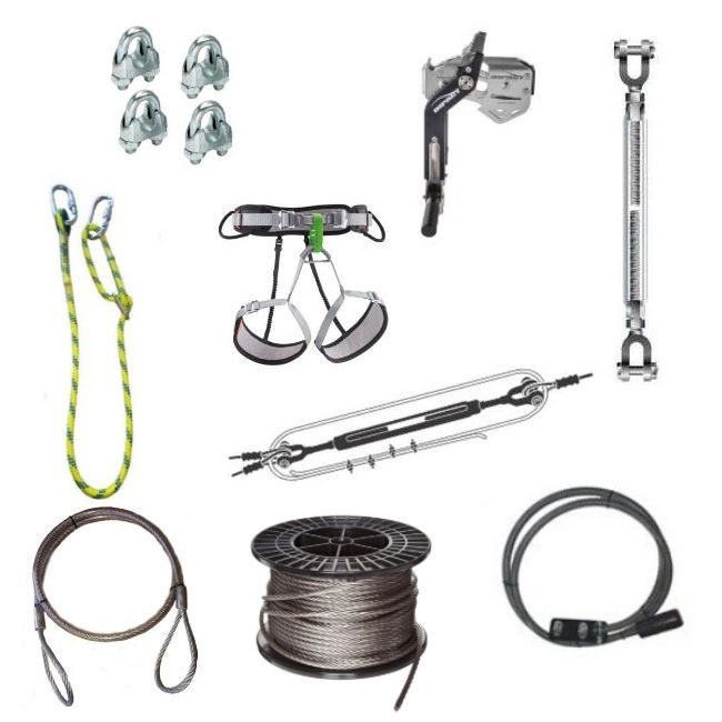 Please find below a list of items that you will find in the box. It's worth noting that you will receive two deliveries for your zip wire kit. 1x will be the wire and strop which is made and cut to order from our wire manufacturer in the West Midlands and 1x will be all the hardware for the kit which comes directly from The Zip Wire Company.