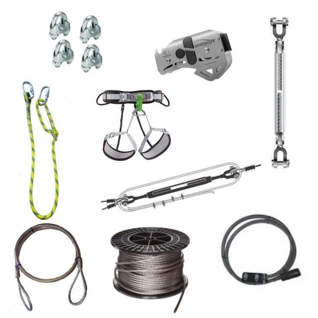Please find below a list of items that you will find in the box. It's worth noting that you will receive two deliveries for your zip wire kit. 1x will be the wire and strop which is made and cut to order from our wire manufacturer in the West Midlands and 1x will be all the hardware for the kit which comes directly from The Zip Wire Company.